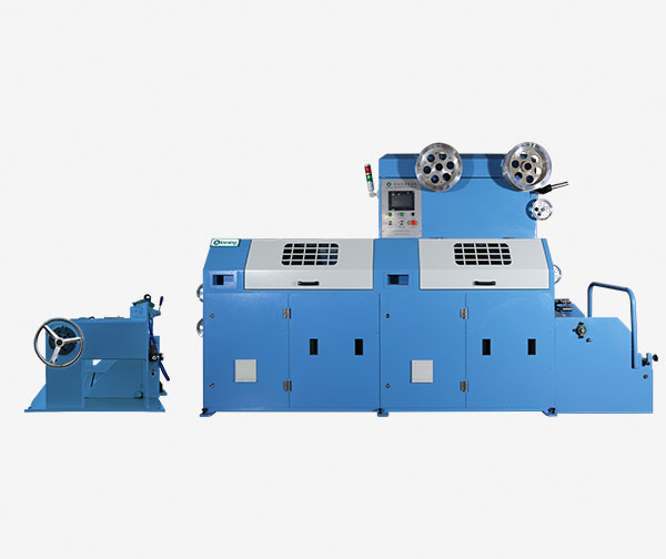 Working principle of the equipment: this machine is double wrapping ,controlled by Ac motor through belt drive. Up and down lapping head has separate motor rotating, the wrapping reel can rotate left and right. Conductor through no 1,no 2 lapping head can realize single layer ,double layer wrapping. Wrapping the wrapping tape on the conductor can meet the need of different layer .Choose the package paper mould, wrapping belt type, width ,direction of wrapping according to the production process.After wearing the lead, adjust the belt tension according the belt width. The belt pitch can be adjusted by adjusting the tractor speed by touch screen. Such as increasing the belt overlap rate, can speed up or slowing the speed of the tractor.